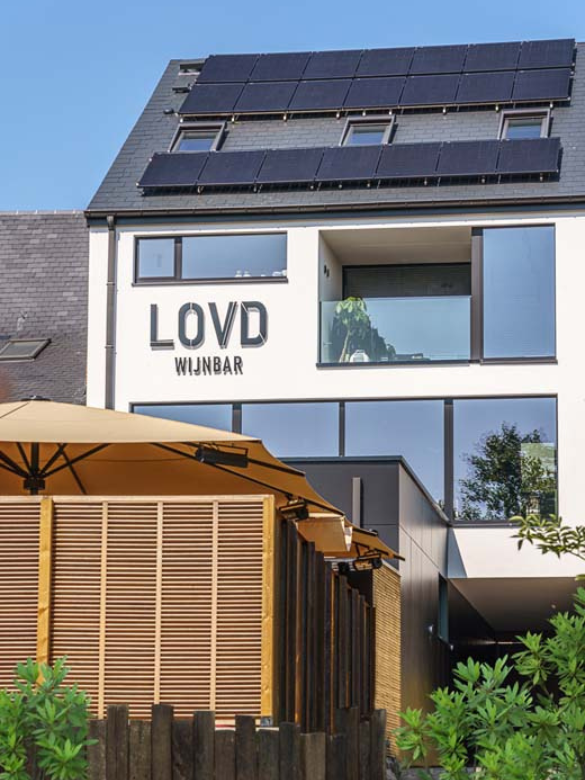 Is een nieuwbouw van een unieke wijnbar LOVD met bovengelegen woonunit te Ninove.
